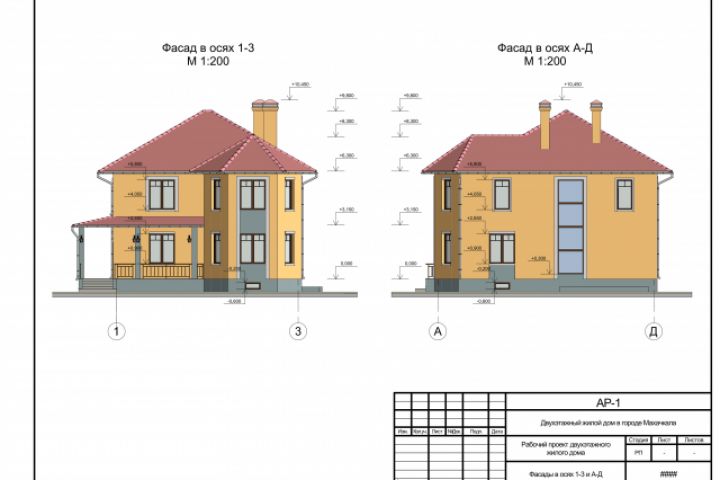 Фасады в осях 1-3 и А-Д-1