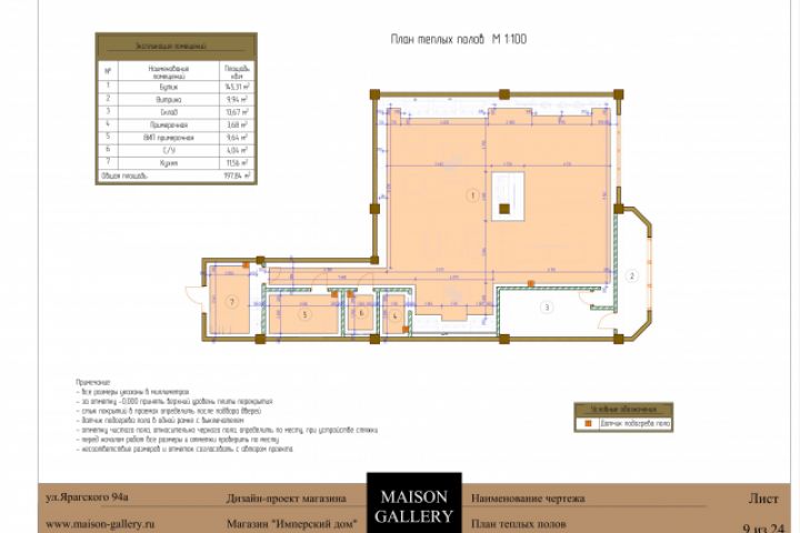 План теплых полов магазина «ИМПЕРСКИЙ” для дизайн-студи MAISON GALLERY