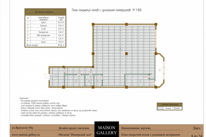 План покрытий полов с указанием материалов магазина «ИМПЕРСКИЙ” для дизайн-студи MAISON GALLERY