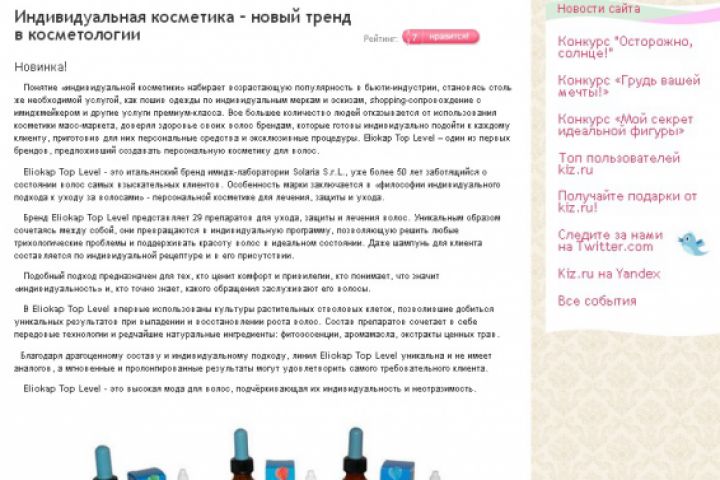 Новость об индивидуальной косметике Eliokap
