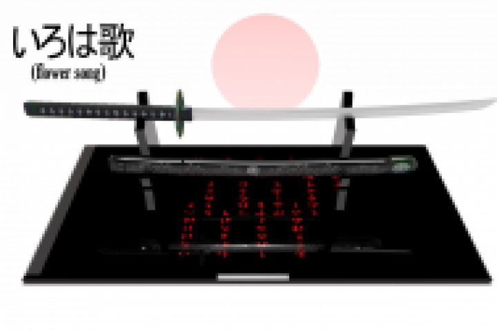 Модель меча Песня Цветов (читается "Ироха- ута"). По мотивам древнего японского стиха с одноименным названием. Тематика цветов прослеживается во всех деталях меча - весь эфес выполнен в разных цветах, а гарда в виде цветка сакуры с переливом.
