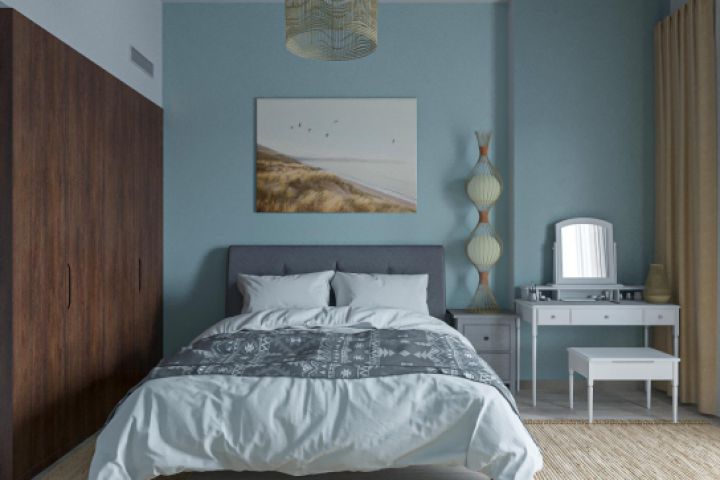 Проект спальной комнаты в мягких тонах, выполнялось моделирование текстиля и осветительных приборов, Corona Renderer