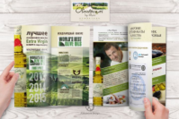 Дизайн презентационного буклета элитного масла "Venta Del Baron" для бутика фермерских продуктов из Испании "Оливатека". Москва