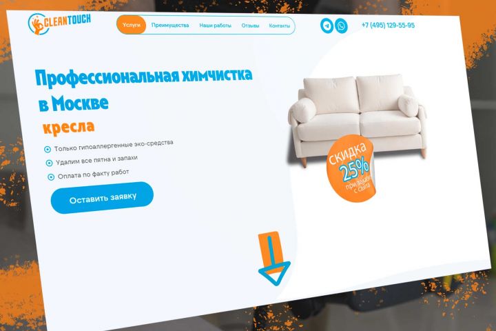 Лендинг с маркетинговой проработкой по химчистке мебели, ковров и кресел в Москве. https://cleantouch24.ru/