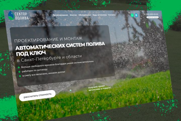 Landing page для компании которая занимается системами автополива. https://sektorpoliva.ru/