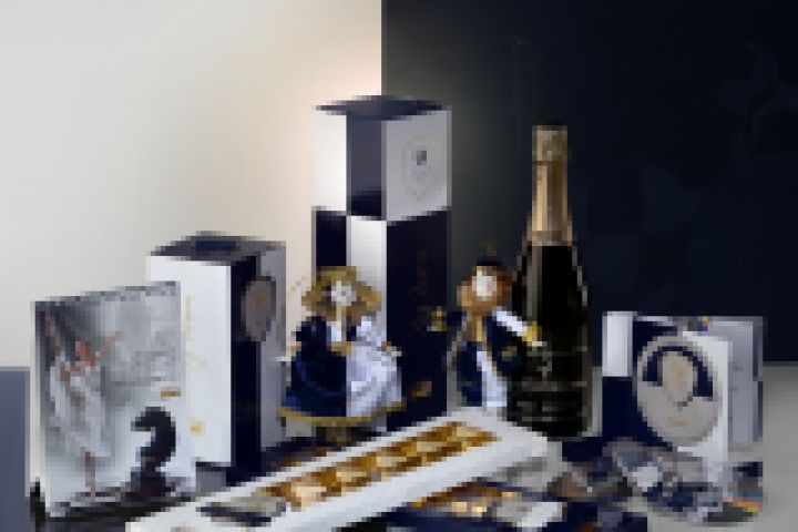 Общий вид подарка "Ход конем", разработанного к наступающему году Лошади. Интересной и новой для меня работой стала разработка индивидуального шоколада для этого проекта. Черная и белая шахматные партии упакованы в индивидуально разработанный золотой коррекс с прозрачной крышкой и картонные коробочки. Фарфоровые куклы на ёлку - шахматные король и королева так же разрабатывались с нуля. Сюжетом календаря проекта стали сцены, на которых пересекались две классические темы: балет и шахматы.