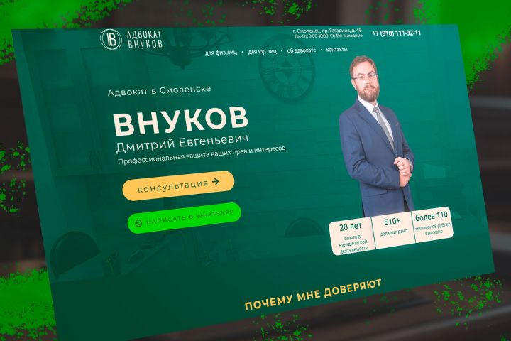 Разработка логотипа и одностраничного сайта под ключ для адвоката. https://advokat-vnukov.ru/