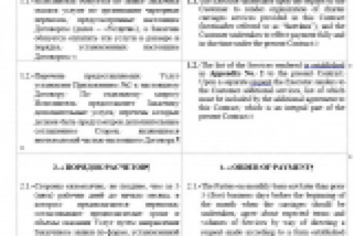 Договор смешанный: фрахт воздушного судна + аэропортовое обслуживание. Также к нему были составлены все необходимые приложения: Список воздушных судов для фрахта; Перечень Услуг, предоставляемых Исполнителем; Заявка на фрахт воздушного судна и/или услуги по организации перевозки; Прейскурант Услуг; Акт сдачи-приемки Услуг. На двух языках: русском и английском. Договор без приложений на 13 страницах.