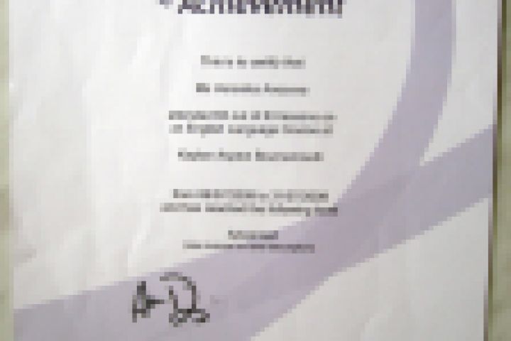 Еще на 2-м курсе МГИМО я обучалась в языковой школе в г. Борнмуте, Англия. По окончанию курса я написала тест, который подтвердил мой уровень знаний - advanced.
