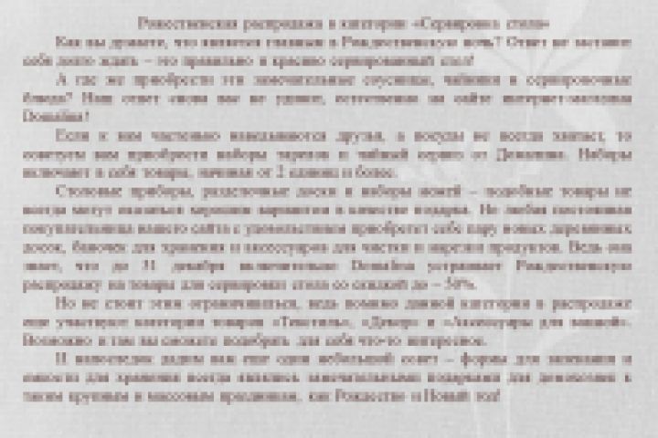 seo-текст Рожественская распродажа в категории Сервировка стола