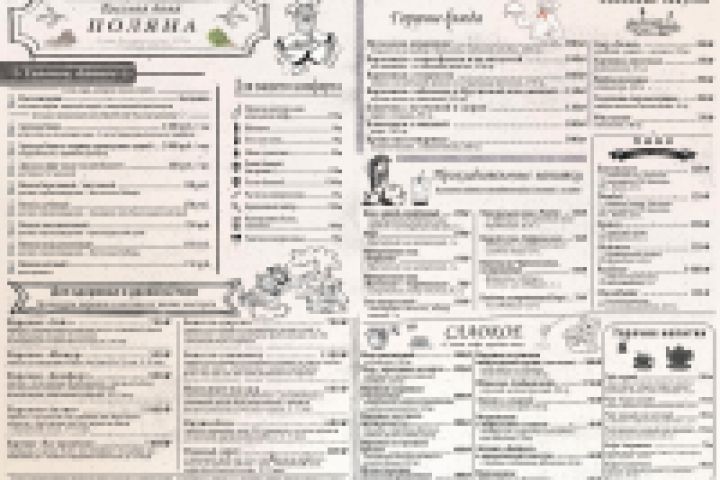 Задачей было придумать и разработать меню для бани "Поляна". Меню должно было выполнять роль подстилки.