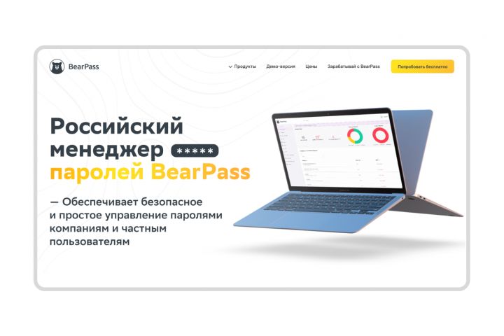 Сайт "BearPass" Программы для разработки: Figma, Adobe Photoshop. Выполнялась разработка дизайна и переноса в WordPress. Многостраничный сайт.