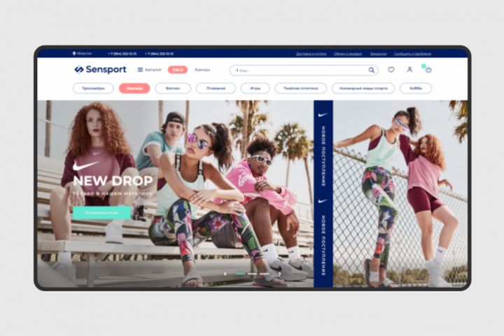 Дизайн сайта Sensport Программы для разработки: Figma, Adobe Photoshop. Выполнялась разработка дизайна. Многостраничный сайт.