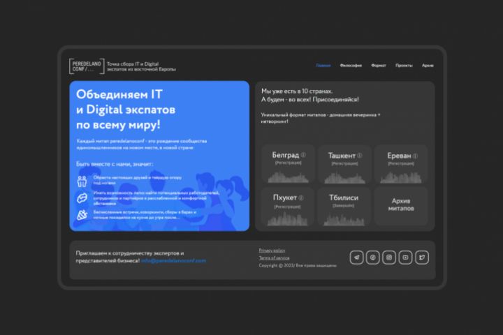 Дизайн сайта "Peredelanoconf" Программы для разработки: Figma, Adobe Photoshop. Выполнялась разработка дизайна сайта и вёрстка на Tilda. Многостраничный сайт.