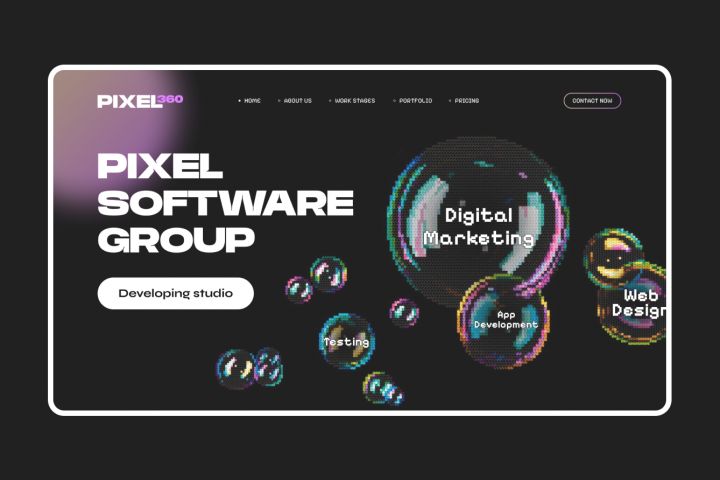 Сайт "Pixel 360" Программы для разработки: Figma, Adobe Photoshop. Выполнялась разработка дизайна и переноса в WordPress. Одностраничный сайт.