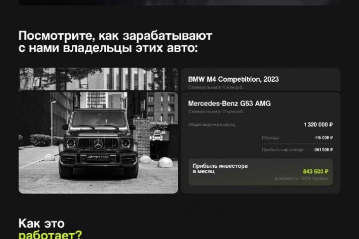 Проект был построен на сдаче своей машины в аренду, получая за это деньги. На реализацию проекта ушло две недели времени. Заказчик был доволен, правок не вносил.