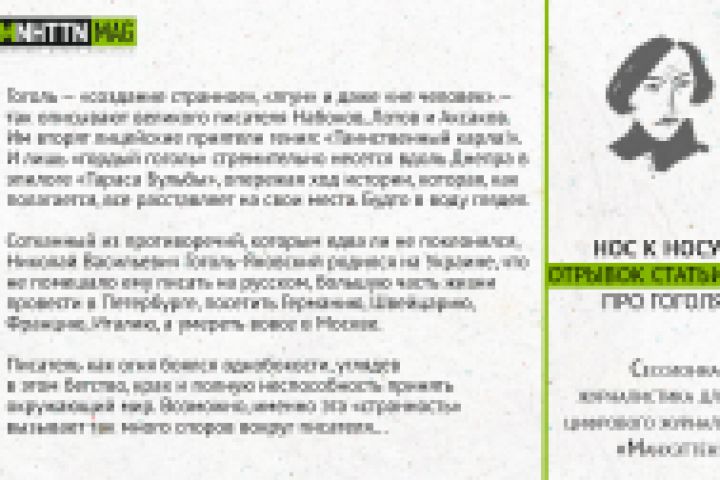 Сессионная журналистика для цифрового журнала "Манхэттен". Конкретно эта статья, написанная для специального "украинского" номера, посвящена гению русскоязычной литературы Гоголю Николаю Васильевичу.