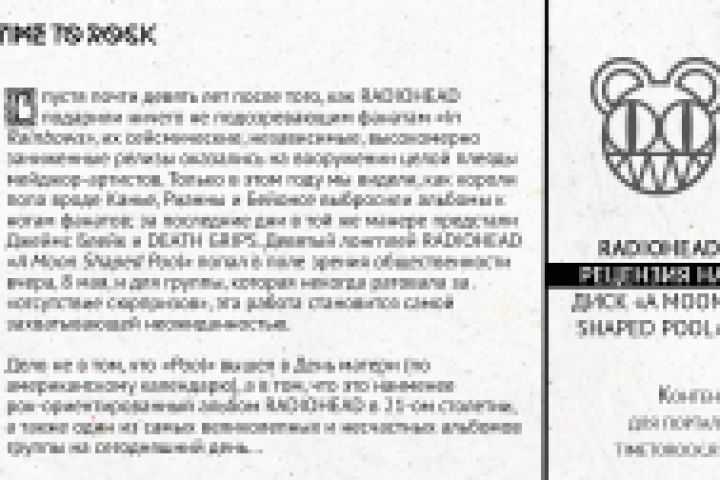 Тексты для любимого портала timetorock.ru. Рецензия на последний альбом Radiohead "A Moon Shaped Pool"