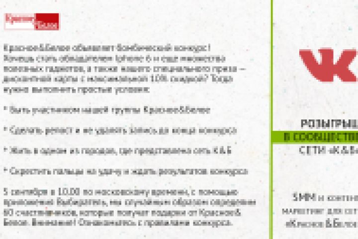 Генерация контента для социальных сетей компании "Красное&Белое". Рекламный пост для розыгрыша.