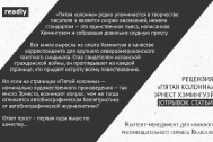 Статьи для наполнения книжного рекомендательного сервиса readly.ru. Обзор книги лучшего писателя в мире Эрнеста Хэмингуэя "Пятая колонна"