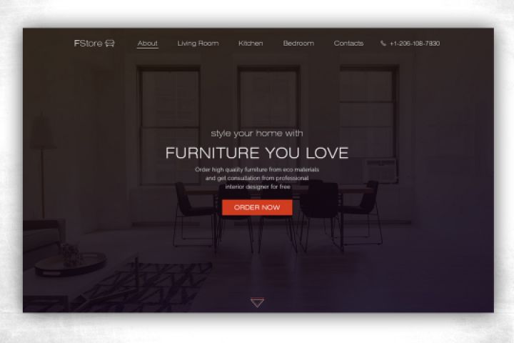 Дизайн первого экрана лендинга магазина мебели FStore