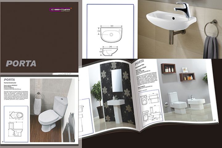 Дизайн и верстка каталога санфаянса. Обработка и ретушь фото, отрисовка схем.