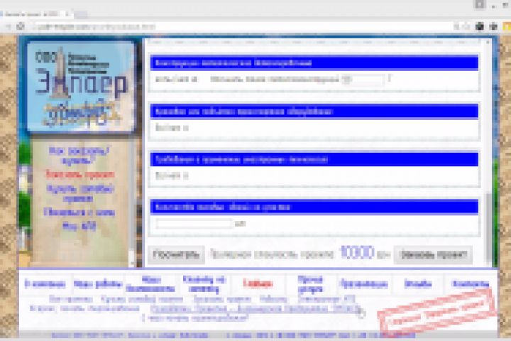 Сделать онлайн калькулятор расчета стоимости АПЗ (архитектурно-планировочного задания) с сохранением результата в PDF и отправкой пользователю по email.