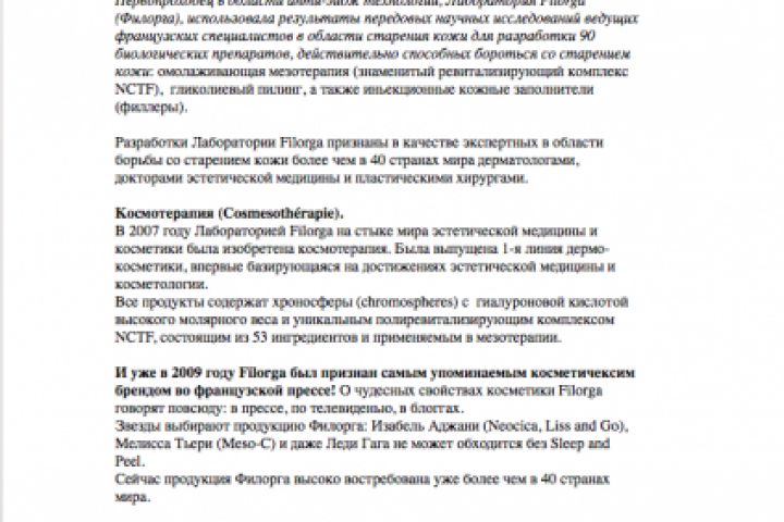 Представлена часть из переведенной и отредактированной статьи о косметическом бренде Filorga.