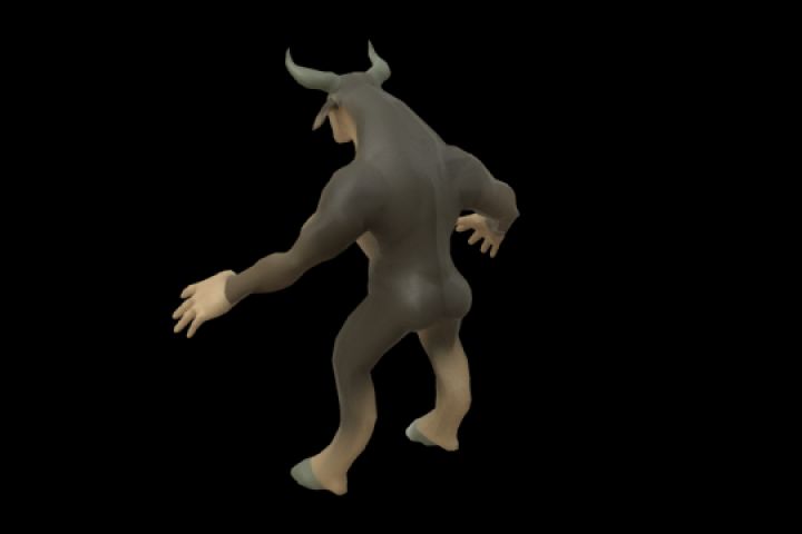 Низкополигональная (6.287 вершин, 11.987 треугольников) модель мифического Минотавра с ригом. Текстуры представлены набором из 4-х атласов.Размер атласа 1024/1024.