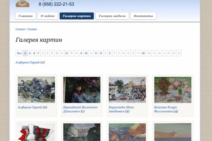 Сайт частной коллекции для продажи картин. Выполнен на CMS Битрикс в простом минималистическом дизайне. Сделана русская и английская версия сайта. Возможность фильтрации по авторам.