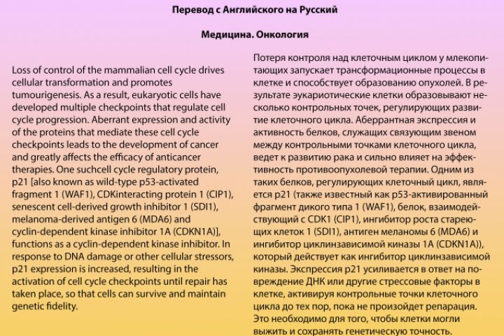 Перевод медицинской статьи с АНГ на РУС. Онкология