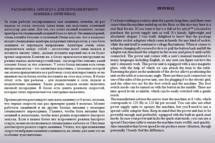 Машинка для перманентного макияжа (Перевод НА АНГЛИЙСКИЙ)