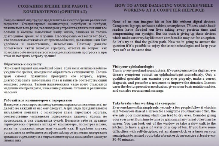 Здоровье глаз (Перевод НА АНГЛИЙСКИЙ)