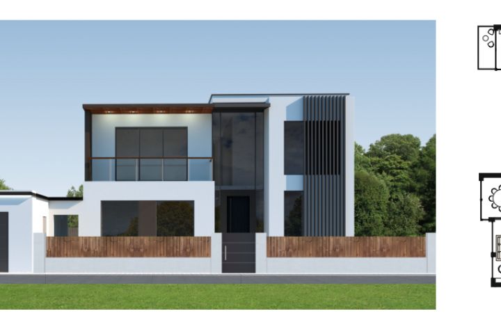 Концепция архитектуры 2-этажного загородного дома с планировочным решением