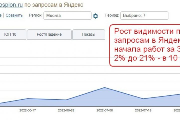 Рост видимости сайта по запросам в Яндексе за 3 мес. с 2% до 21% - в 10 раз