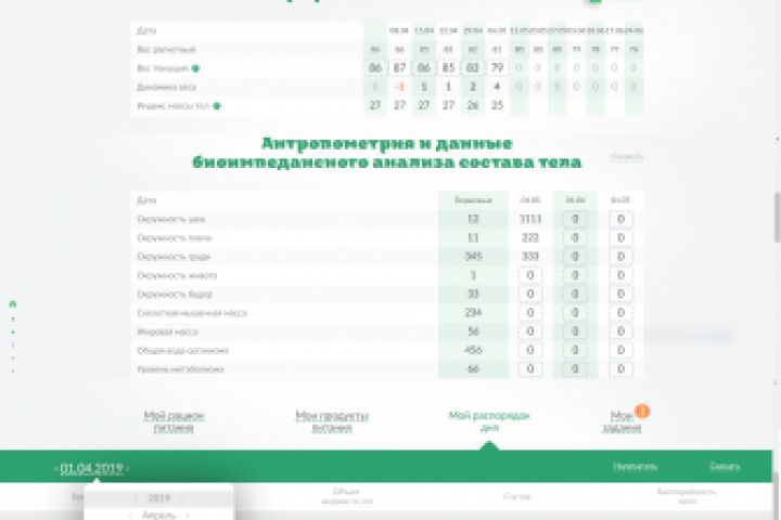 - Личный кабинет (фукционал предоставляет возможность по контролю веса и антропометрии тела человека; доступ к аудио, видео материалам; графикам распорядка дня, рациона питания, заданиям, личному дневнику и т.д.).