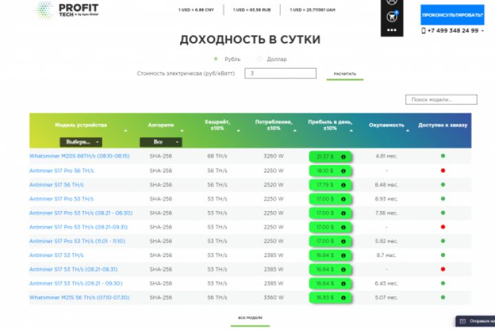 Модуль для WP для расчета окупаемости майнеров. Характеристики для расчета берутся с популярных ресурсов.