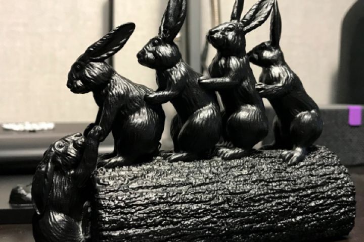 Моделирование и 3д печать. Зайцы на бревне. Размеры композиции 120х99х46мм