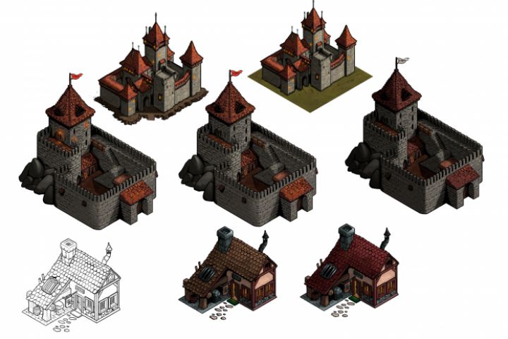 несколько зданий для игровых проектов.