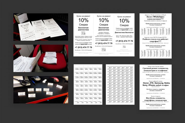 Купон Ценник и Объявления для последующей печати в Сервисном центре