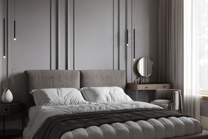 3д визуализация интерьера спальни в неоклассическом стиле