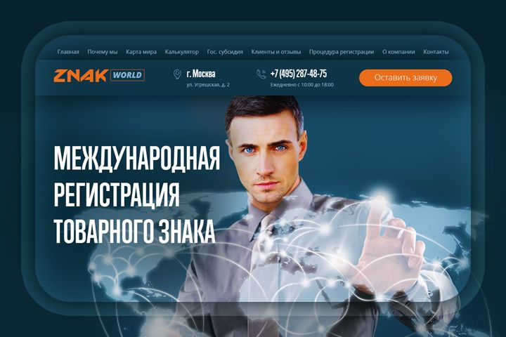 Landing Pages «Znak world» — международная регистрация тов.знака