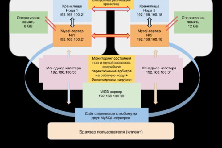 Отказоустойчивый сервер, построенный на 4 узлах кластера.