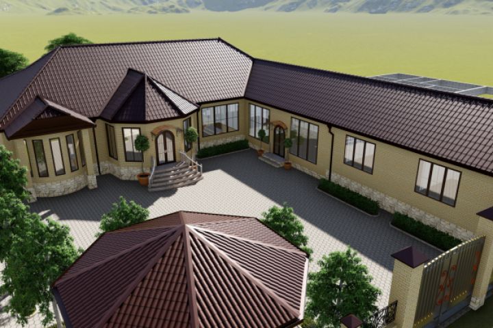Проект загородного дома (кирпичный дом) Жилая площадь около 450 кв.м. Софт: ArchiCAD, Lumion 10, Adobe Photoshop