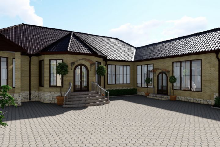 Проект загородного дома (кирпичный дом) Жилая площадь около 450 кв.м. Софт: ArchiCAD, Lumion 10, Adobe Photoshop