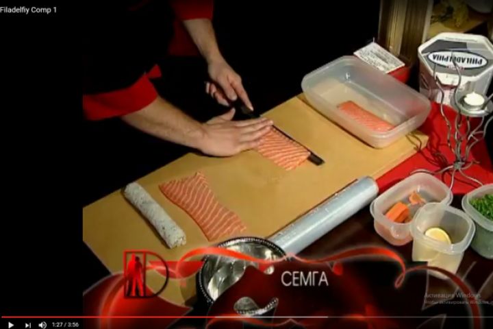 Видео для рекламы ресторана. Описывает процесс приготовление роллов "Филадельфия"