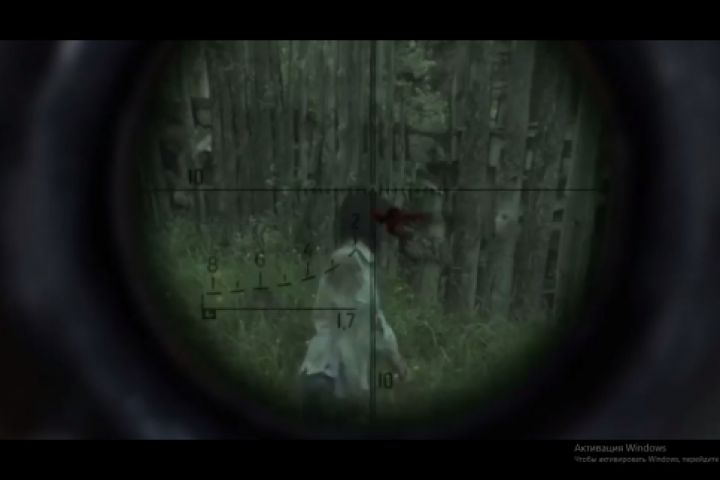 Оптический прицел. брызги мозгов от попадания пули в голову зомби