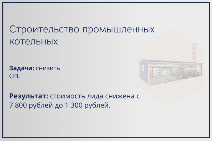 Ситуация: Рынок строительства котельных достаточно узкий, при этом в нем высокая конкуренция. В связи с этим стоимость клика и, как следствие, стоимость заявки очень высокие. Для этого потребовалось точно сегментировать аудиторию, прорисовать путь каждого сегмента ЦА от идеи до обращения за котельной и настроить рекламу на ранние стадии поиска услуги.