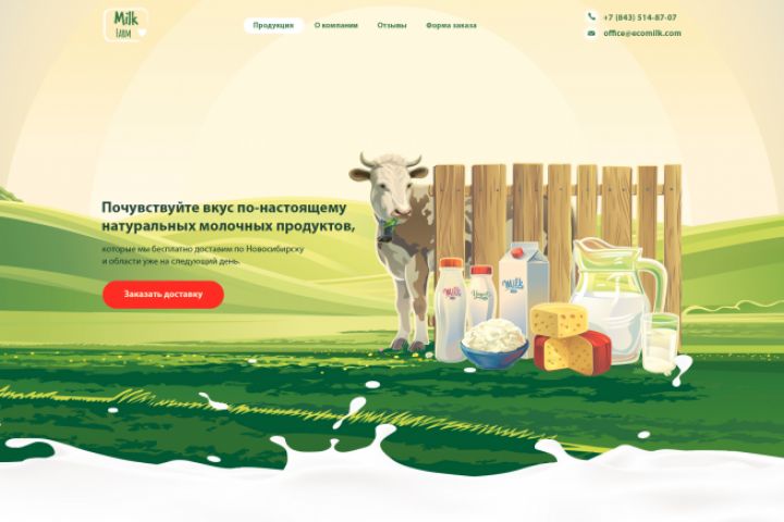 Разработка дизайна Landing Page молочных продуктов, по заказу "Дизайн-бюро Андрея Гаврилова".