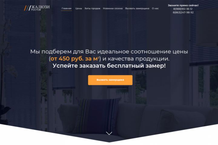 создание дизайна Landing Page для компании "Жалюзи Ростов".
